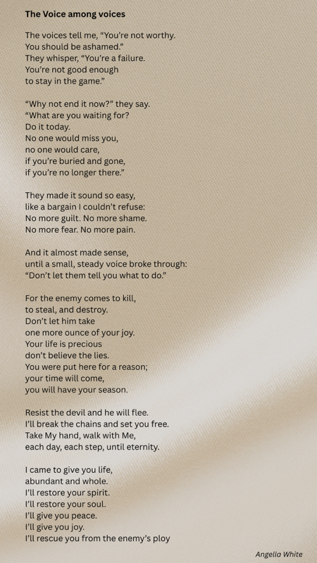 May this be a reminder that your life is precious, your voice matters, and you are not alone.